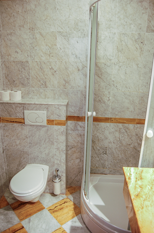 Yellow bathroom with shower Ap3